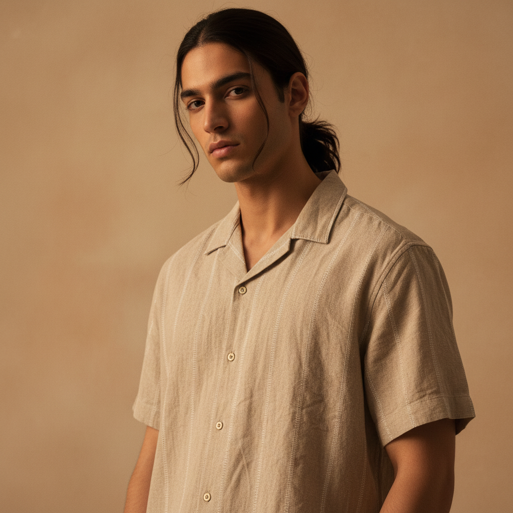 Baggy Shirt - Beige + White thin texture