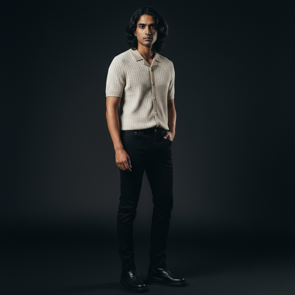 Beige Knitted Textured Cuban