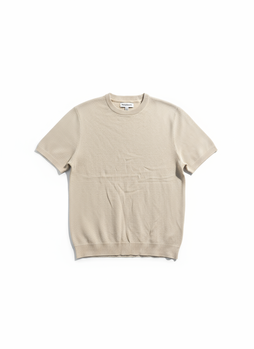 Beige - Round Neck Knitted