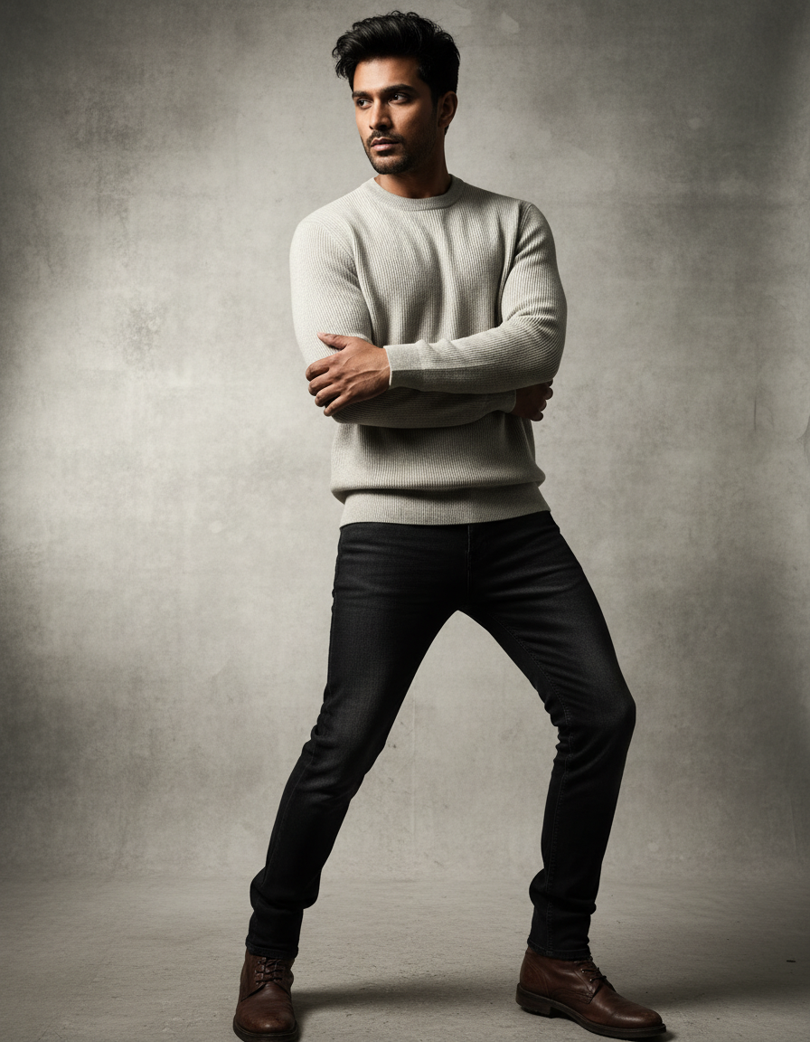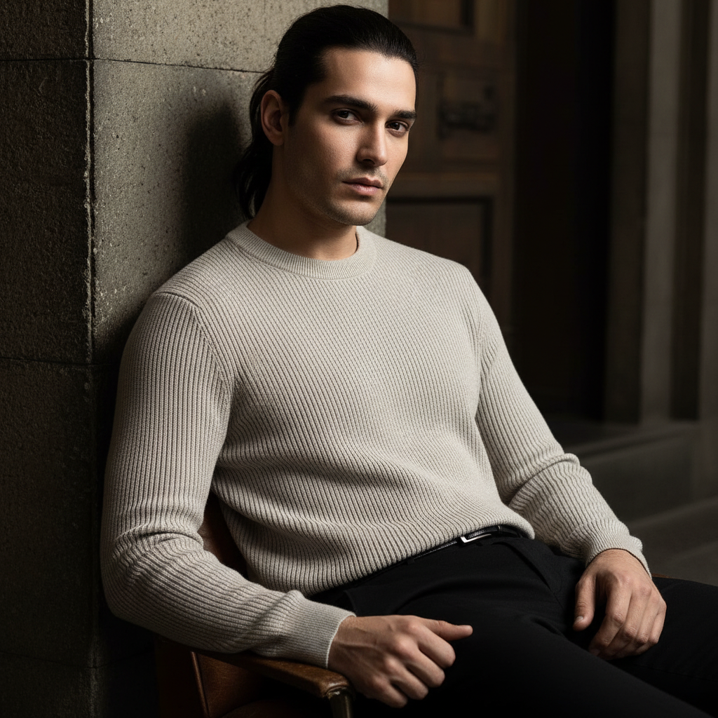Biege Ribbed Round Neck