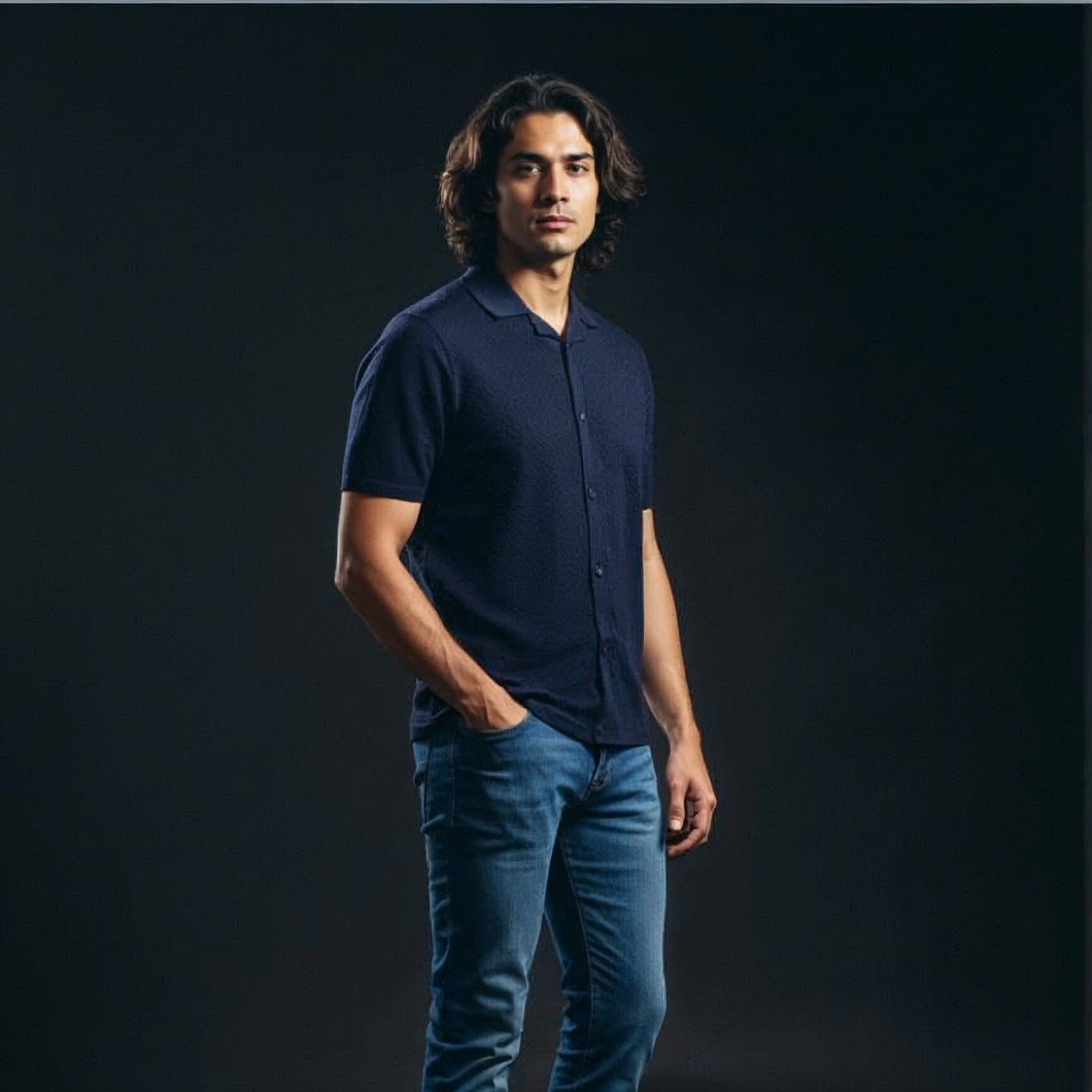 Nevy Blue ZIG ZAG Knitted Short Sleeve Cuban