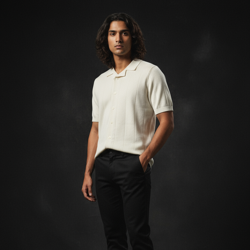 WHITE BOWDEN Knitted Short Sleeve Cuban
